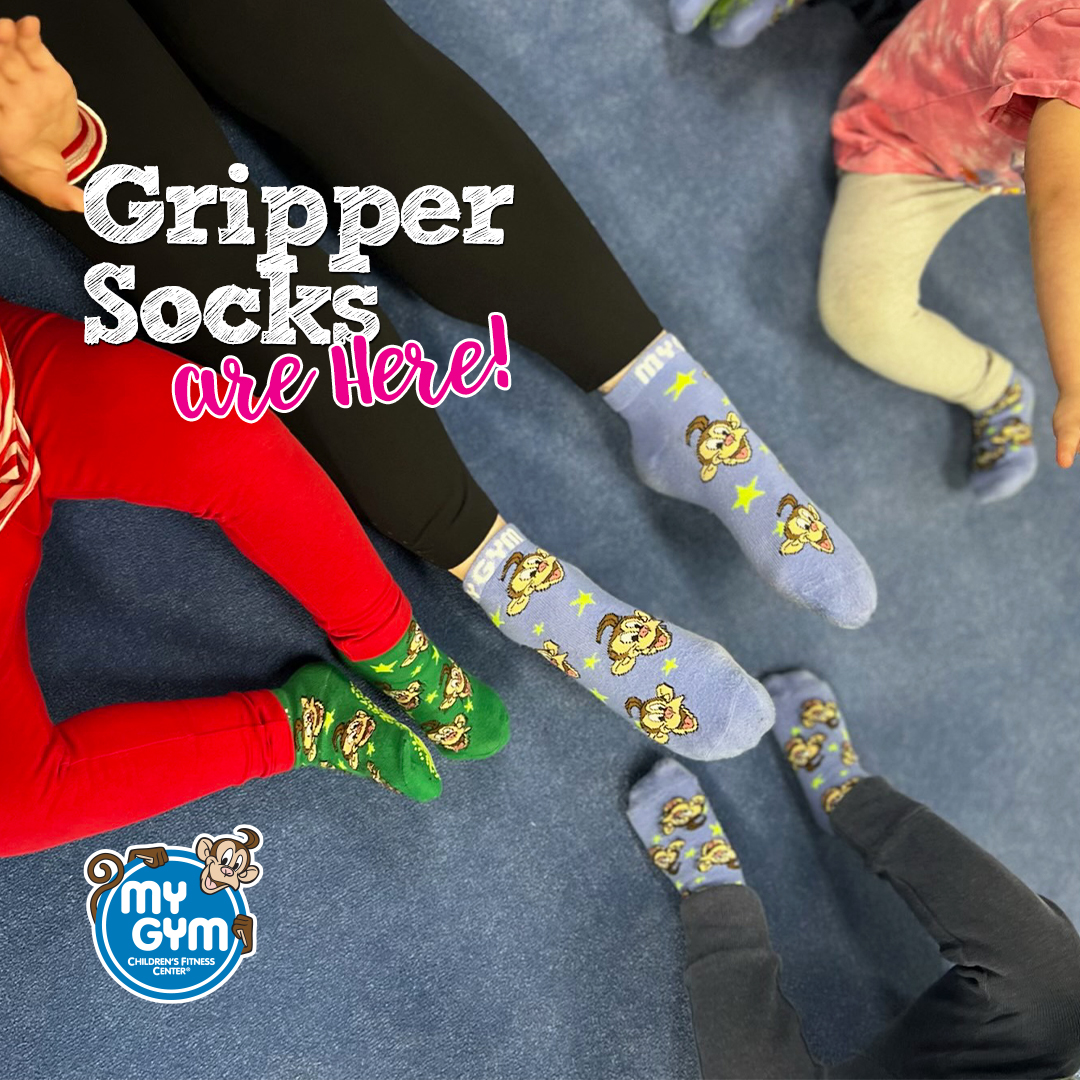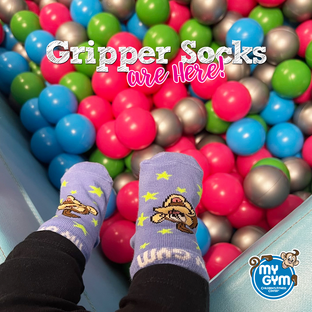 We’re so excited to be launching our new My Gym Gripper Socks in our gym! For safety and cleanliness purposes, as of Insert date here, My Gym will require all children on the floor to wear the My Gym Gripper Socks during classes, parties, and events. Each current member will be given one pair of My Gym Gripper Socks, courtesy of My Gym. Additional pairs can be purchased for just $3.50 here in the gym or online. Please see the scannable QR code in the lobby for additional pairs, or let a staff member know you would like to purchase some. Parents, you’re not required to wear My Gym Gripper Socks, but we have adult sizes for purchase as well!